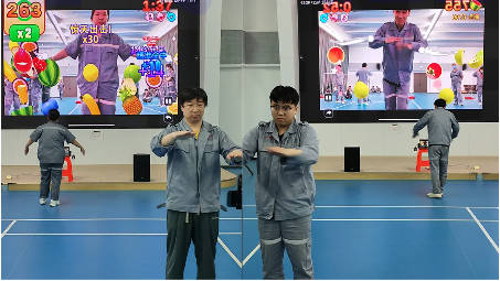 the motion-sensing watermelon slicing game brought the energy to a new high—contestants matched arm movements to music, slicing virtual “watermelons” with precision, triggering bursts of laughter and cheers from the crowd.