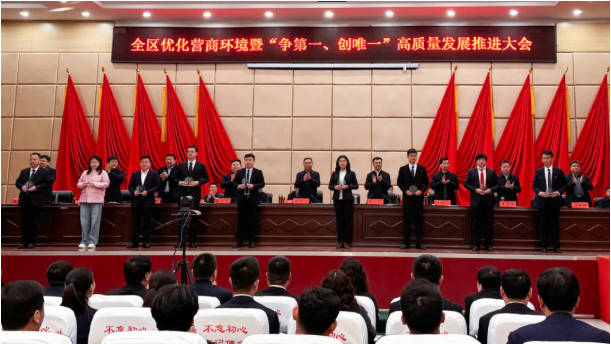 during the meeting, the district commended outstanding units, enterprises, and individuals of 2024, laid out key current tasks, and sent a strong signal of its unwavering commitment to fostering a first-class business climate. the conference further solidified the guiding principle of “striving to be the best and the only,” and mobilized the entire district to tighten focus, take action, and accelerate momentum toward a new era of high-quality economic and social development.