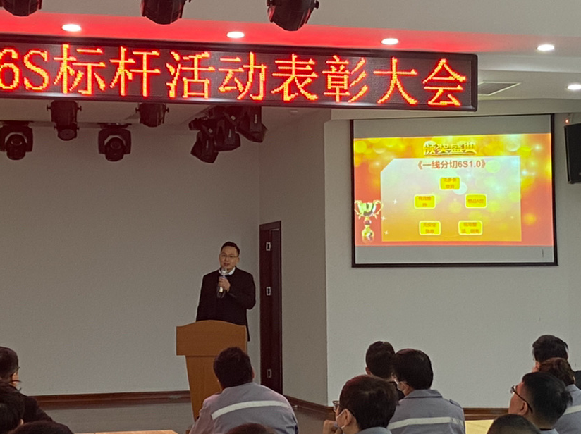 第四项:活动总结。大会最后由6s标杆活动推行委主任进行讲话,他表示对所有成员的付出,表示感谢,同时也肯定了大家45天来取得的成绩,最后他对标杆区下一步计划做了5点展望:加快推进分切6s标杆区2.0工作,做到现场作业标准化、任务图表化、管理目视化、生产精益化。