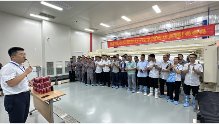 这是金力股份全线贯通的第四代宽幅、高速湿法隔膜生产线,该产线年产能不低于2亿平方米。此次安装调试、从开箱到全线贯通仅用55天,先后完成机械安装、精度调整、线路安装、校验、程序植入参数、植入单动验证、投料联动调试等工作,最终完成全线贯通,产品各项指标全面满足客户品质需求。此次产线贯通标志着金力股份全面掌握了第四代生产线的定制、安装与调试,设备能力再上新台阶,产品品质再度提升,成本再度下降。