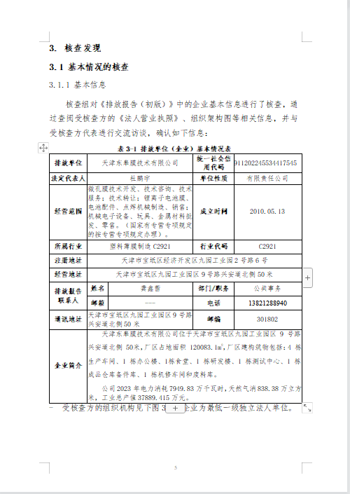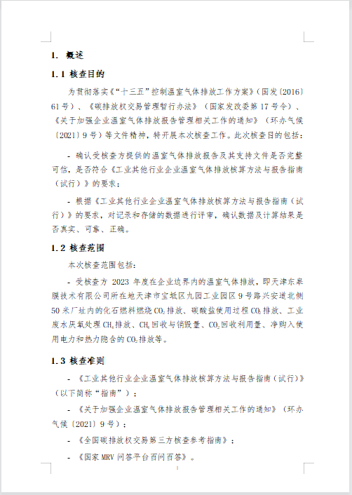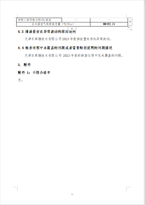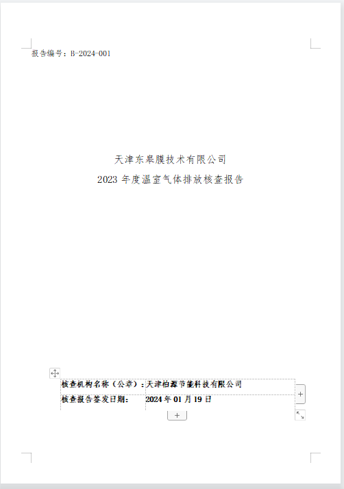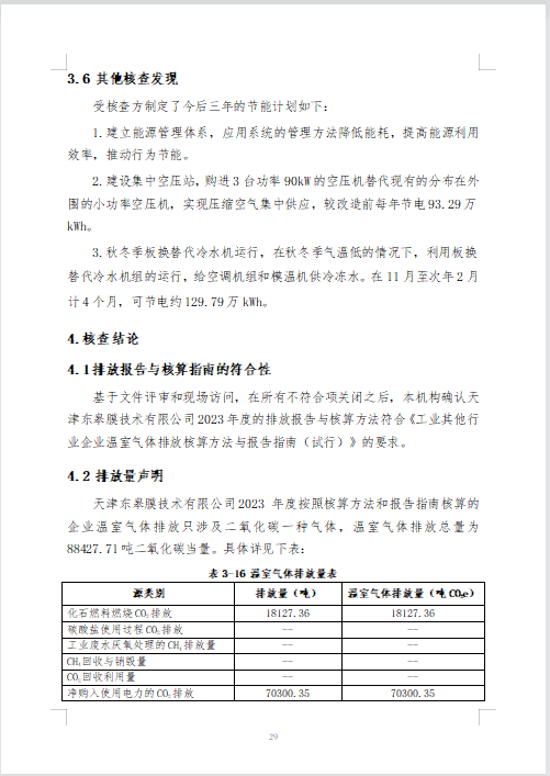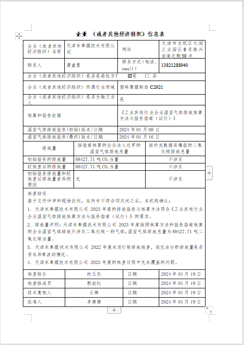 天津东皋膜技术有限公司 2023年度温室气体排放核查报告 -凯时kb88官方