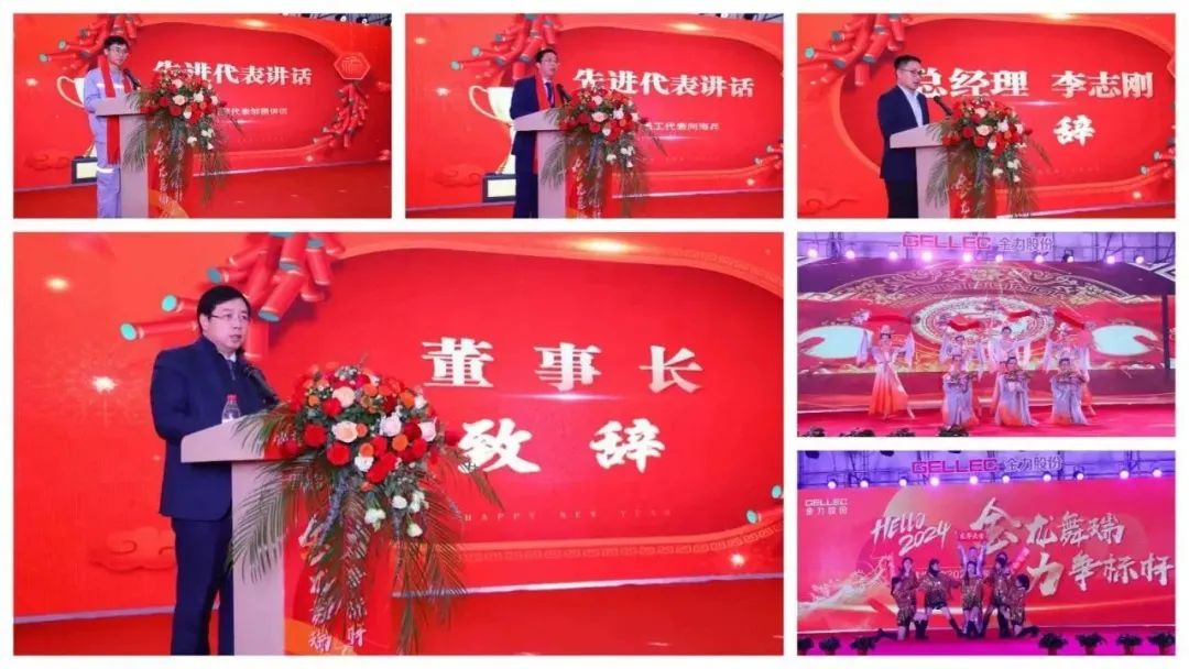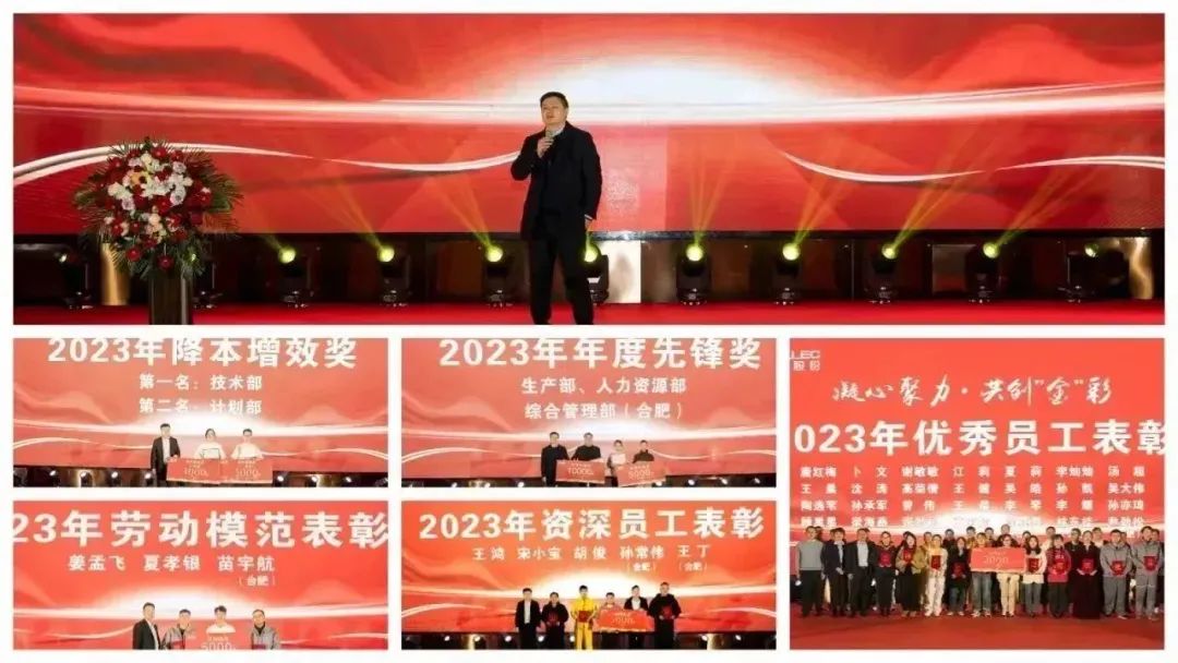 1月26日,金力股份年会盛典隆重召开,活动由2023年总结表彰暨2024年工作部署大会、晚会及晚宴两大环节组成,董事长袁海朝,董事、总裁徐锋携公司中高层领导出席会议,公司先进部门和先进个人获奖代表参加会议,安徽金力、天津东皋、湖北金力通过观看线上直播的形式参加。